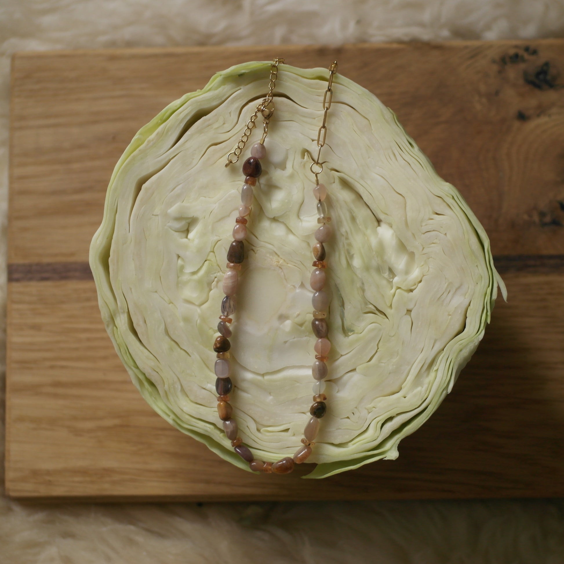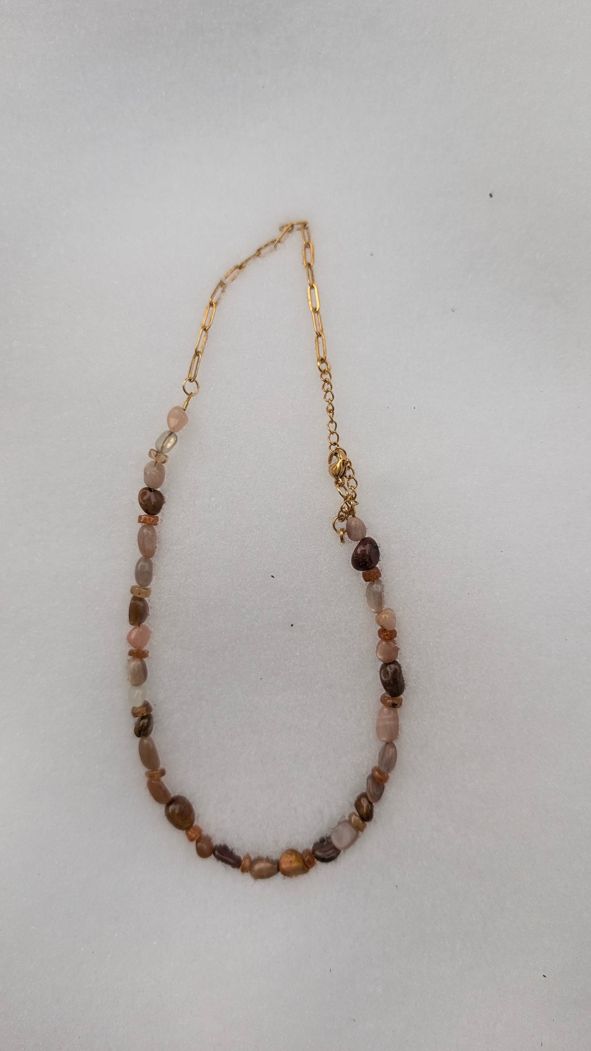 eine Kette aus Tigerauge, Jaspis, Quarz & Sonnenstein